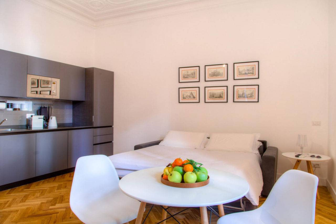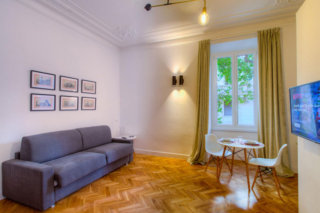 Experience a unique stay in Rome's historic center. Choose one of our refined apartments, where elegant interiors seamlessly merge with the convenience of a prime location.