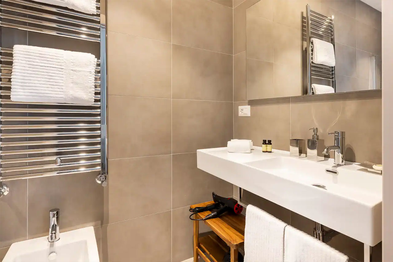 La stanza doppia, che si affaccia su via Tomacelli, gode di un bagno in camera con vasca, mentre quella che protende su via del Grottino usufruisce di un bagno con doccia e seduta ed è caratterizzata da un originale soffitto a voltine. Sempre in quest’ultima stanza vi è un piccolo balcone dove è possibile ammirare la cupola della Basilica di Sant’Ambrogio e San Carlo, chiesa nazionale dei lombardi residenti a Roma.