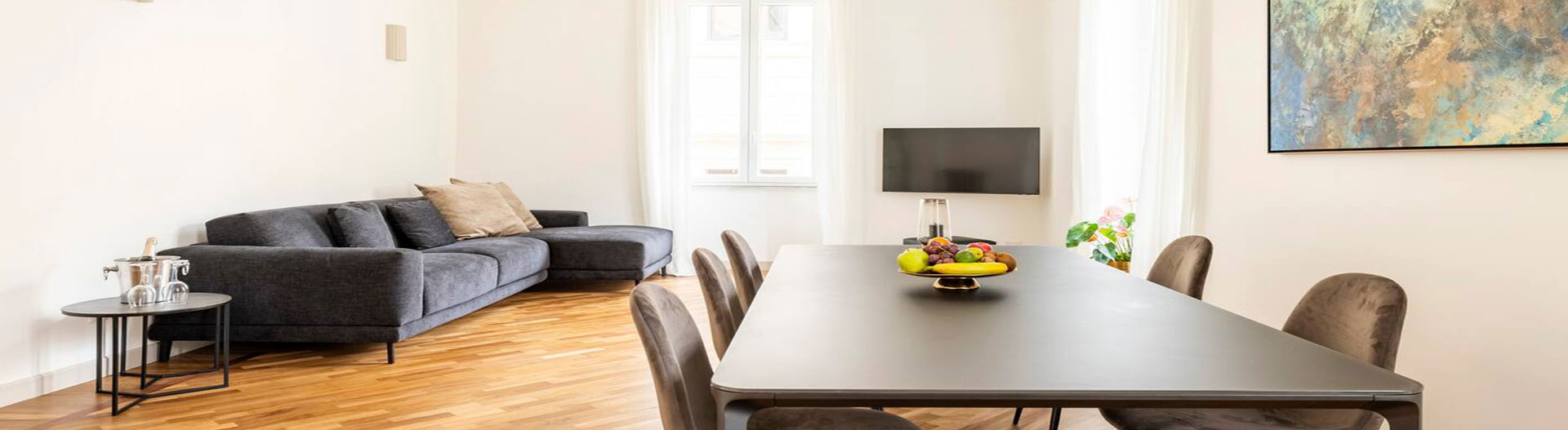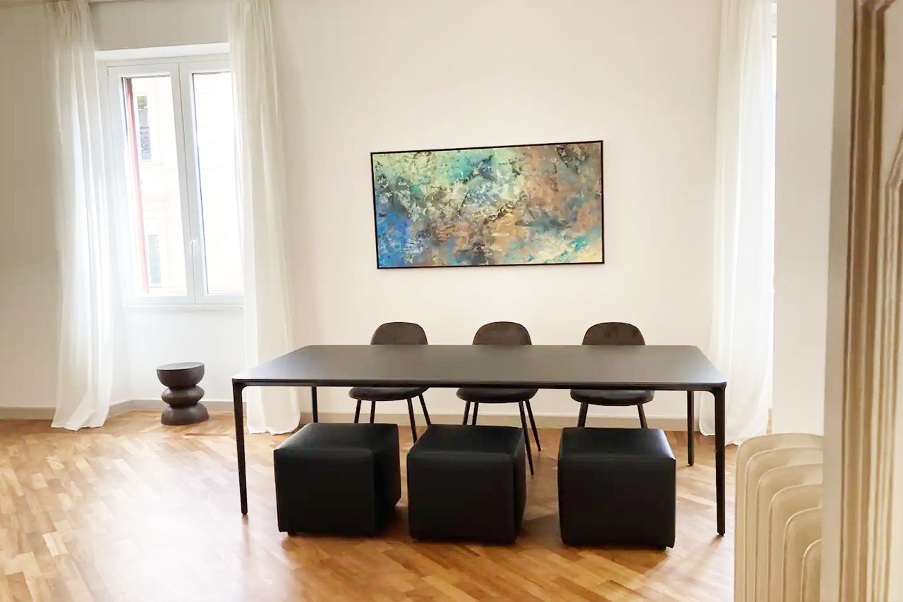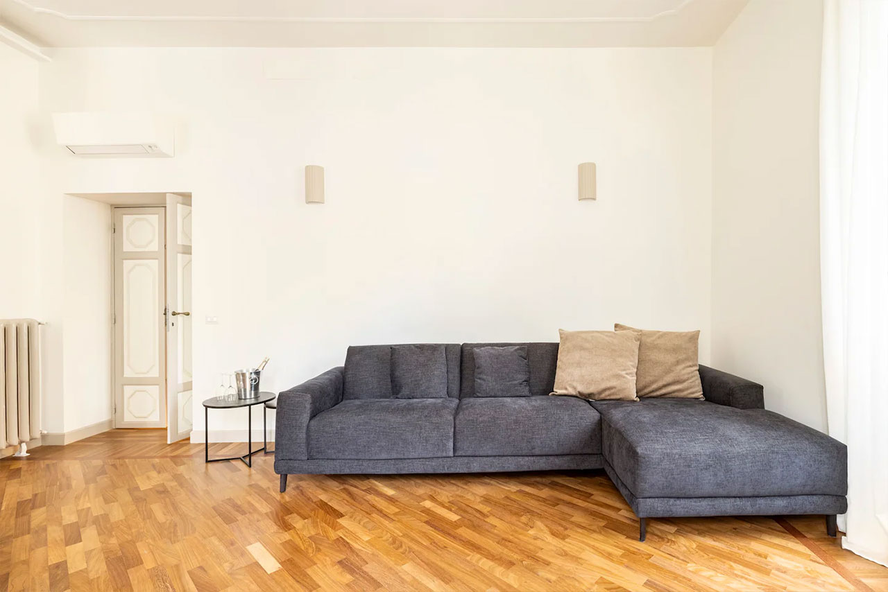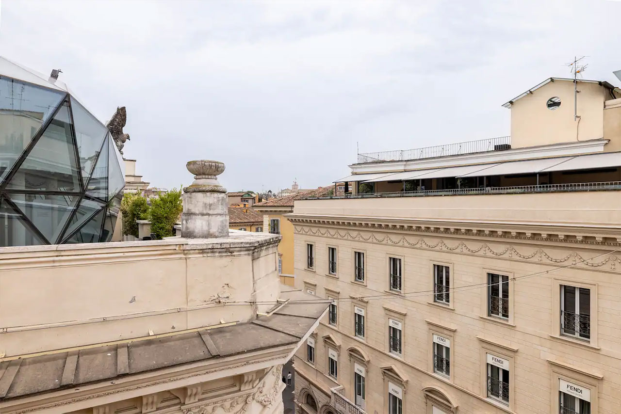 App Giulia is a large and prestigious 130 sqm flat located on the third floor of a historic building facing Via Condotti.