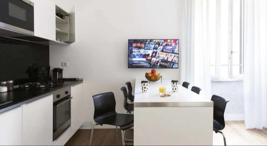 App Leoncino Design is a 95 sq m apartment that can accommodate up to 6/7 people, arranged in three separate areas: two double bedrooms with 170 x 200 cm beds, one with an en-suite bathroom with a whirlpool tub, a second bathroom with a large hydromassage shower, a living room with a double sofa bed (140 x 200 cm), and a spacious open-plan kitchen.